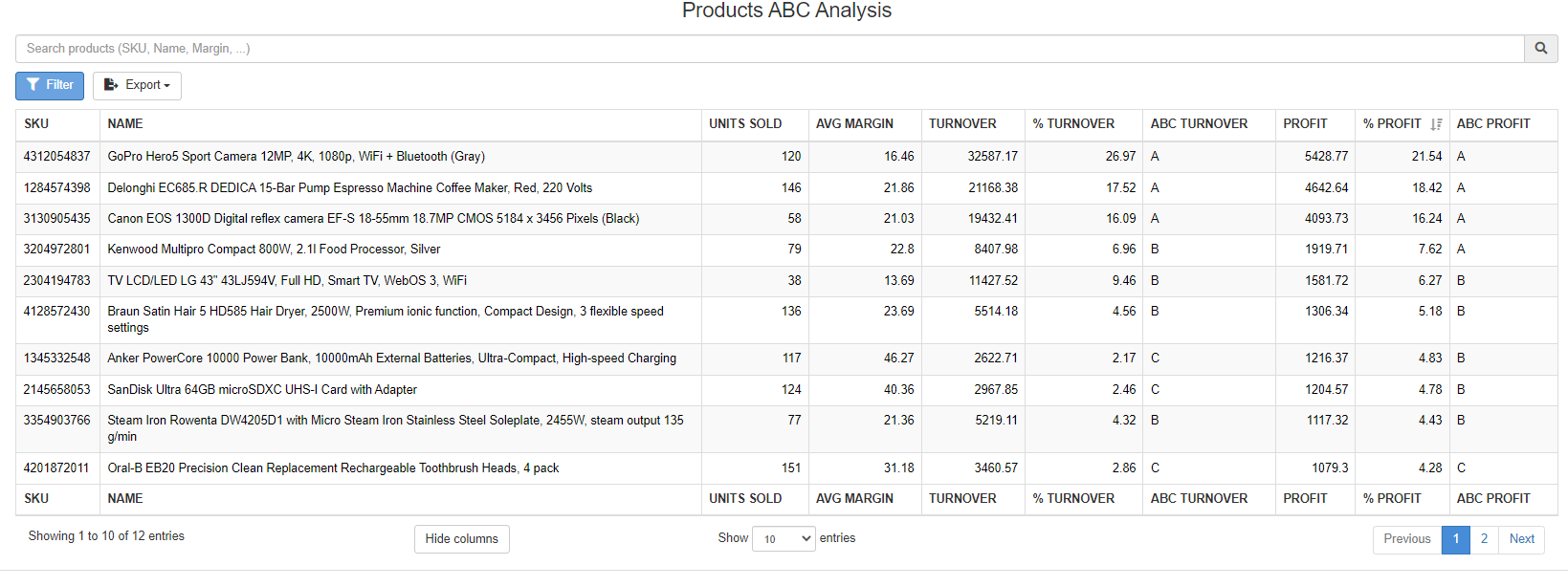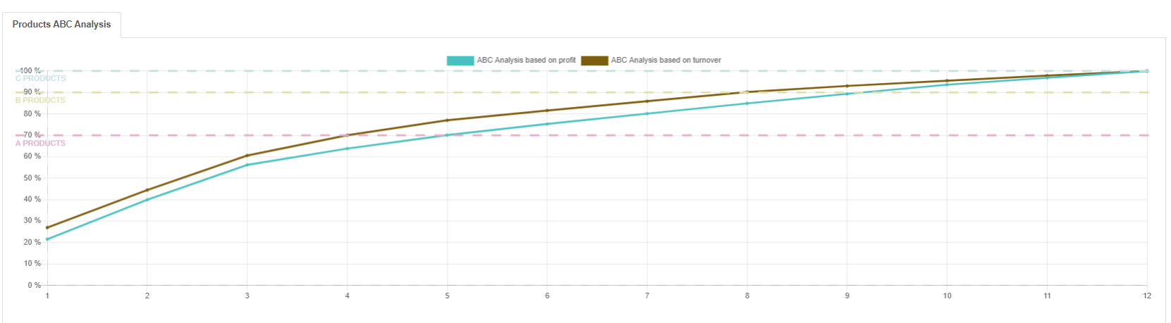 Below the graph, you can see the list of all your products and some relevant ABC information: