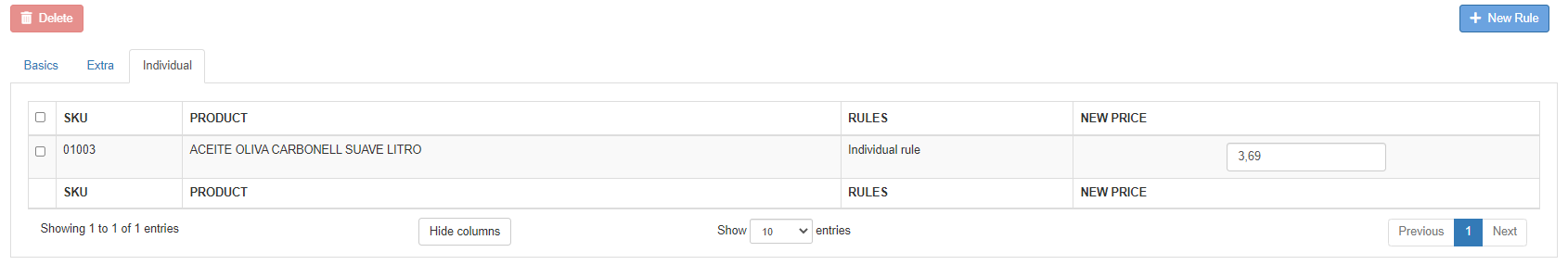 you can see all the rules you have created, Basic rules, extra rules and individual rules.